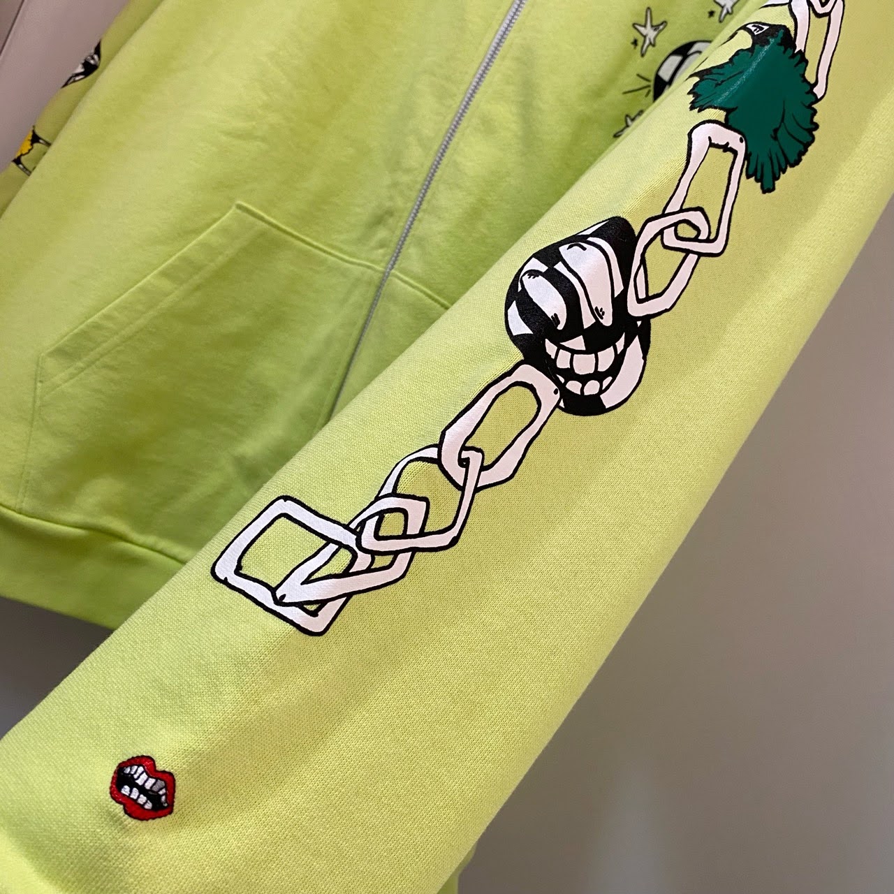 【"CHROME HEARTS/ クロムハーツ"】Size XXL フーディー Matty Boy Link Zip Up Hoodie Lime Green