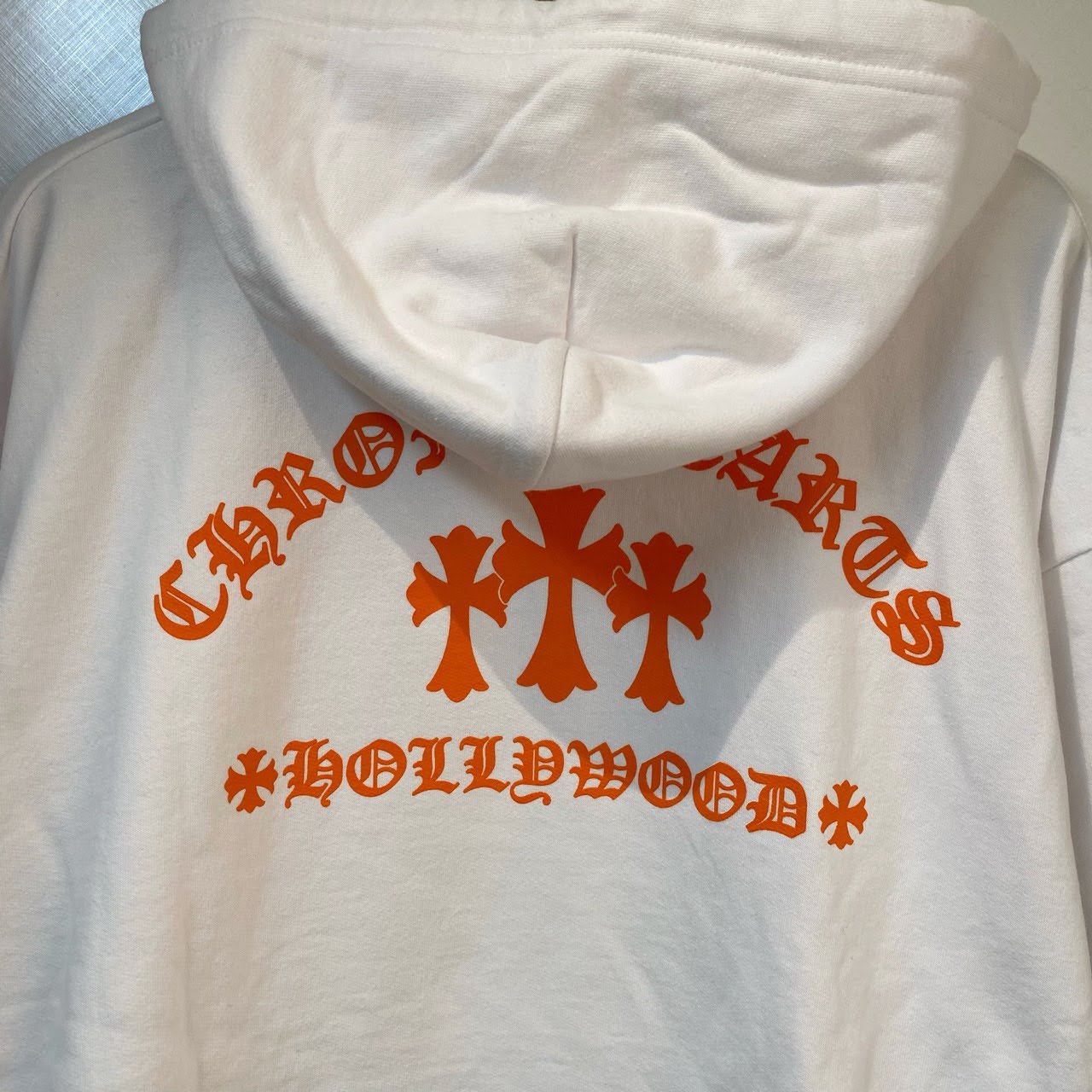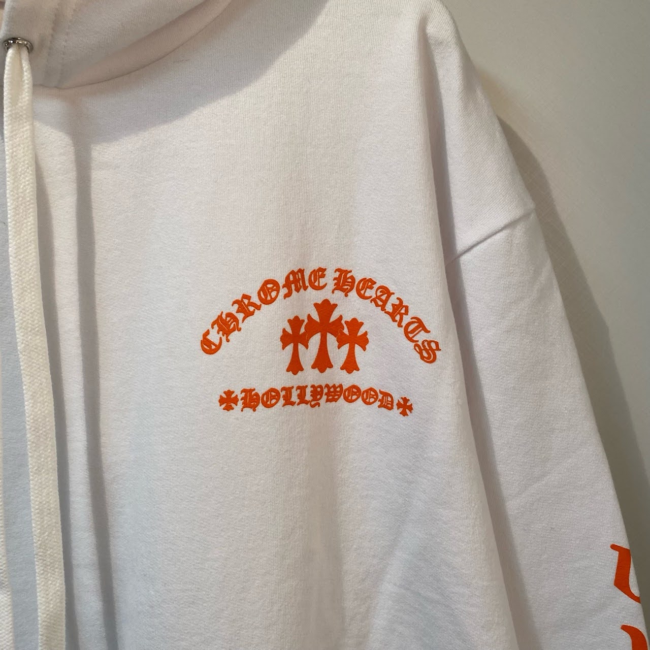 【"CHROME HEARTS/ クロムハーツ"】Size L フーディー Cemetery Cross White/Orange