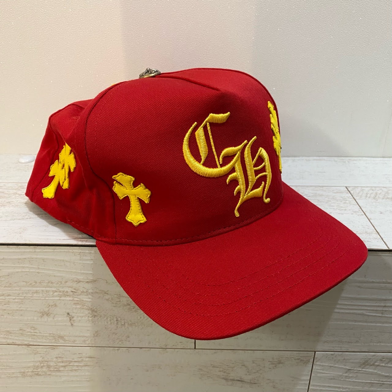 【"CHROME HEARTS/クロムハーツ"】Size onesize 53-60 キャップ Cross Patch Baseball Hat Red/Yellow