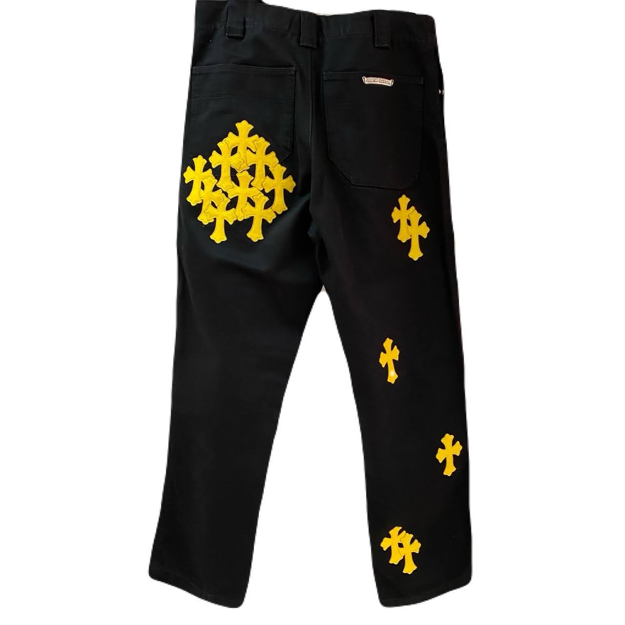 【"CHROME HEARTS/クロムハーツ"】Size 30インチ クロスパッチ パンツBlack Yellow