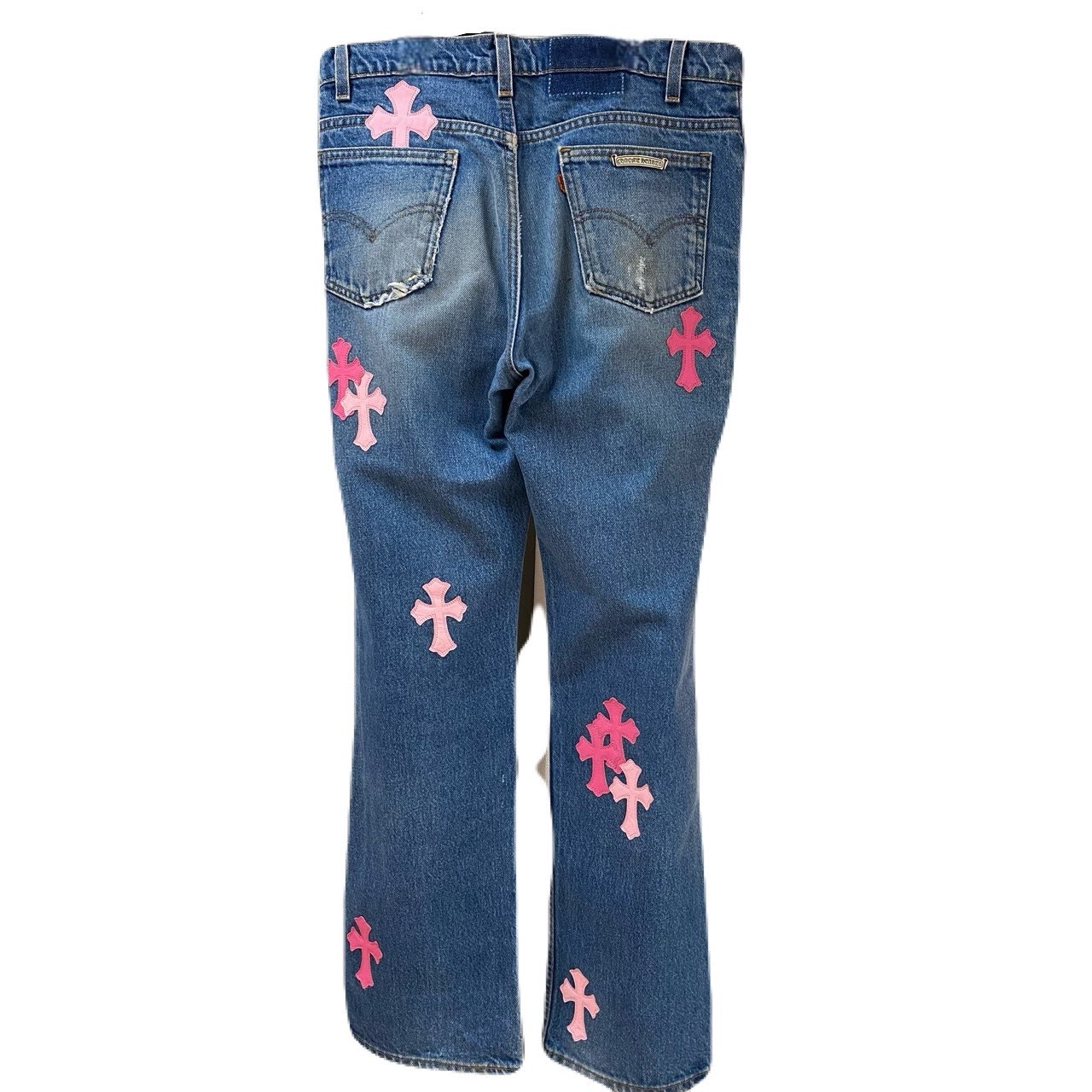 【"CHROME HEARTS/クロムハーツ"】Size 34インチ クロスパッチ パンツ Denim Pink